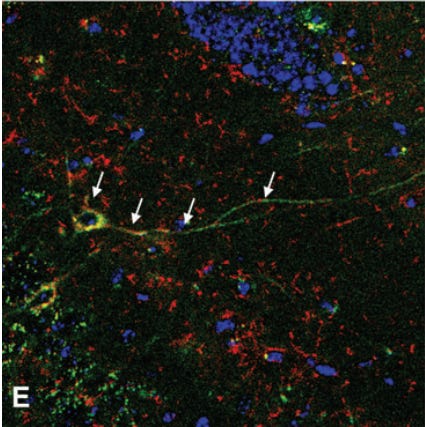Dr. Dawe’s group followed these brain-homing FMSCs over time, removing brain tissue at the day of birth and 4 weeks postpartum and characterizing which surface proteins the green population expressed with immunostaining, while also visually observing their changes in shape and behavior with confocal microscopy. These cells split into two distinct populations in the injured models. Some hugged the walls of nearby blood vessels and expressed mouse macrophage marker F4/80 and took on elongated, macrophage-like morphologies, while others clustered around the chemical lesions and expressed markers associated with neuron, astrocyte, and oligodendrocyte lineages. And it wasn’t only their surface proteins which changed when they integrated around injured sites—these new brain cells looked the part, too.